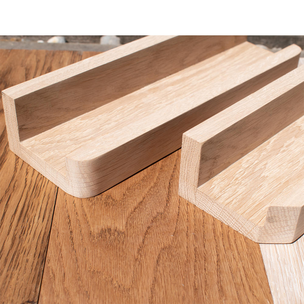 Popular oak picture ledge lengths include 120cm, 150cm and 200cm. Oak rails/sections are 15 to 18mm thick.